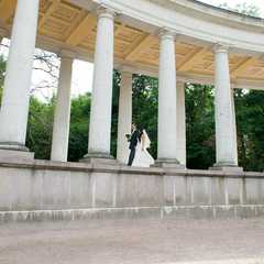 Усадьба Архангельское, расположенная в 20 км к западу от Москвы.Архитектурный комплекс Архангельское - очень красивое, интересное и изысканное место для свадебной прогулки: красивая архитектура, сосновый лес на берегу реки Москвы.